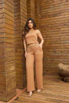 Minimalismo sofisticado que nunca erra. O conjunto em tricot canelado Prioritat une versatilidade e presença com elegância. A regata de gola alta tem um toque moderno e refinado, valorizando o colo e a postura. A calça reta traz estrutura ao look com caimento impecável, elástico embutido sem franzido para melhor sustentação, além de bolsos frontais chapados e bolsos traseiros funcionais. Disponível nas cores camel e preto, é a escolha ideal para composições monocromáticas elegantes ou combinações com acessórios ousados. Um modelo prático e atemporal, perfeito para dias de trabalho, viagens ou ocasiões casuais.